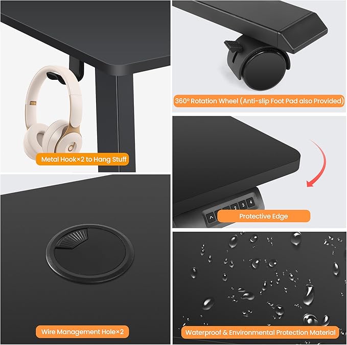 - 【Durable & Quiet Motor】– Designed for peak performance, our electric standing desk boasts a high-quality motor that delivers smooth, quiet height adjustments from 27.9" to 46.8", while the advanced anti-collision system ensures safe operation without interruptions