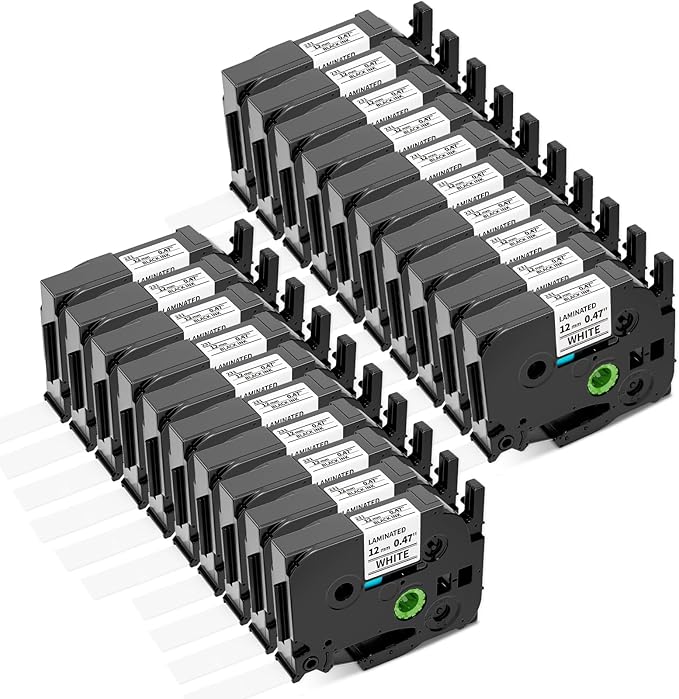 - 【Replacement for Ptouch Tape 12mm 0.47 white Clear and Easy to Read】Tze 12mm 0.47 laminated white tape Compatible with brother pt-2040 label maker tape refill printing is smooth and clear and is easy to read. Compatible with brother p touch tape themselves are slightly glossy, but do not cause glare under bright light, making them unreadable