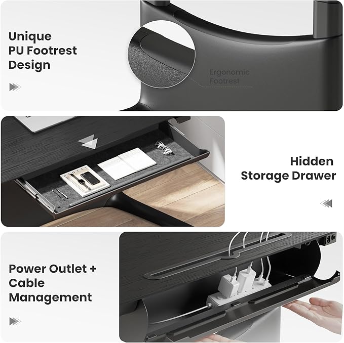 - Hidden Drawer & Organized Workspace: Unlike most standing desks, this one includes a large built-in drawer (25" wide) for easy storage of laptops, notebooks, and accessories. Combined with a rear cable tray + desktop grommet, it keeps your workstation clean, organized, and distraction-free.