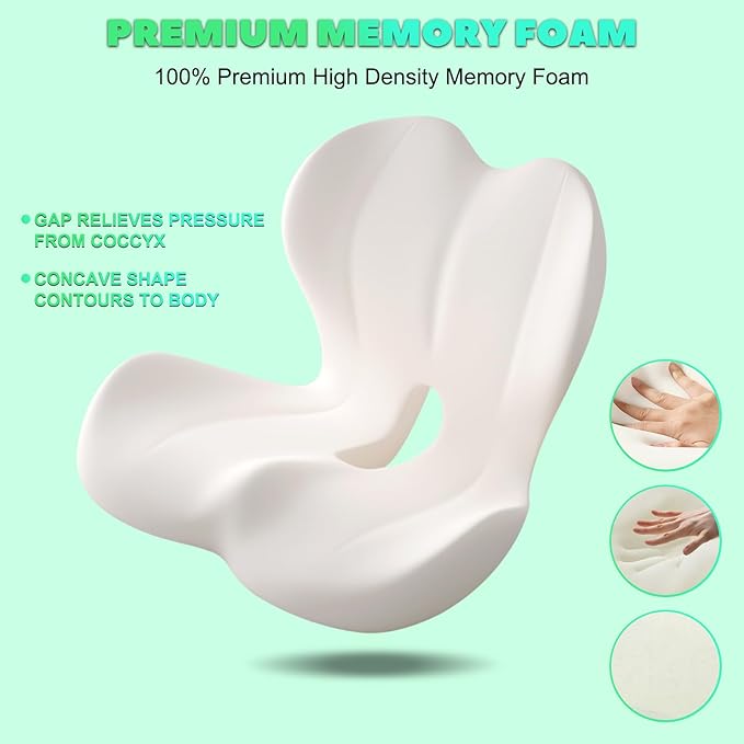 - 【Ergonomic Design】 Buttocks cushions are designed to relieve sedentary discomfort, effectively dispersing the pressure on the buttocks and tailbone, whether you are working in the office, studying at home, or traveling long distances, it will make you feel more at ease when you sit down